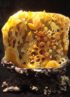 其实,不是所有的云南黄蜡石都可以被认为是黄龙玉,只有达到玉石级的黄蜡石才称“黄龙玉” 。
